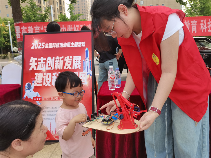 创新科技展品展示和动力火箭发射等实验,吸引了众多小朋友及家长的驻足,为孩子们幼小心灵种下一颗科学的种子。