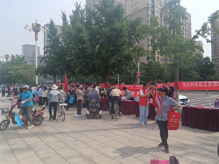 活动中,各单位在东广场设置科普咨询台、宣传站,通过陈列展板、悬挂横幅标语、发放宣传资料、现场解惑等方式,讲解创新创业、科技惠民、低碳经济理念等科普知识,为群众现场宣传阐释科学家精神的时代内涵,展示科技工作者保国为民的风采,让群众不断提高崇尚科学家意识。向群众宣传科技相关政策,各成员单位共发放各种图书资料1万余份(册),接受咨询群众800余人次,悬挂横幅9条。