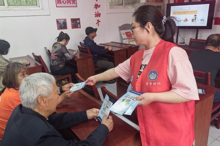 活动中,科普志愿者向居民宣传生活垃圾分类知识,发放宣传资料,进行科普宣传。