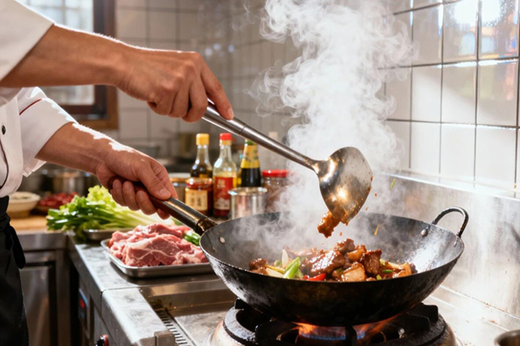 热锅冷油、大火快炒,不要等到油冒烟再放菜,家中最好配备能测油温的金属温度计。