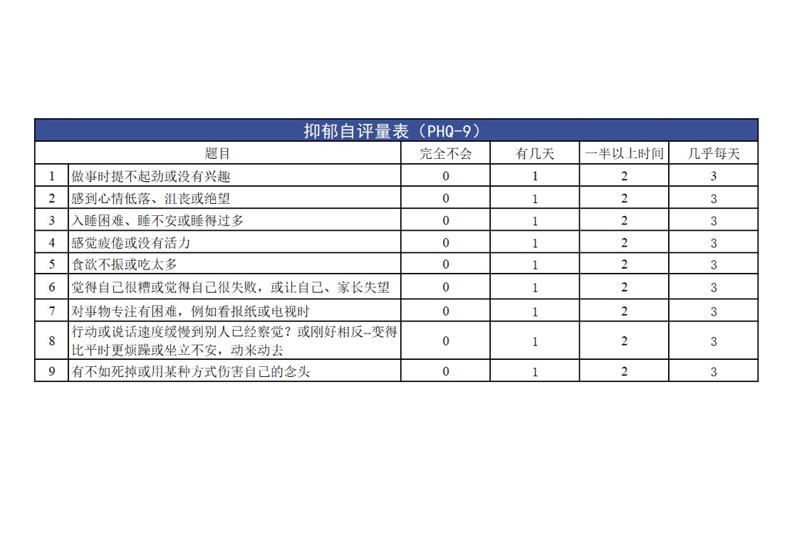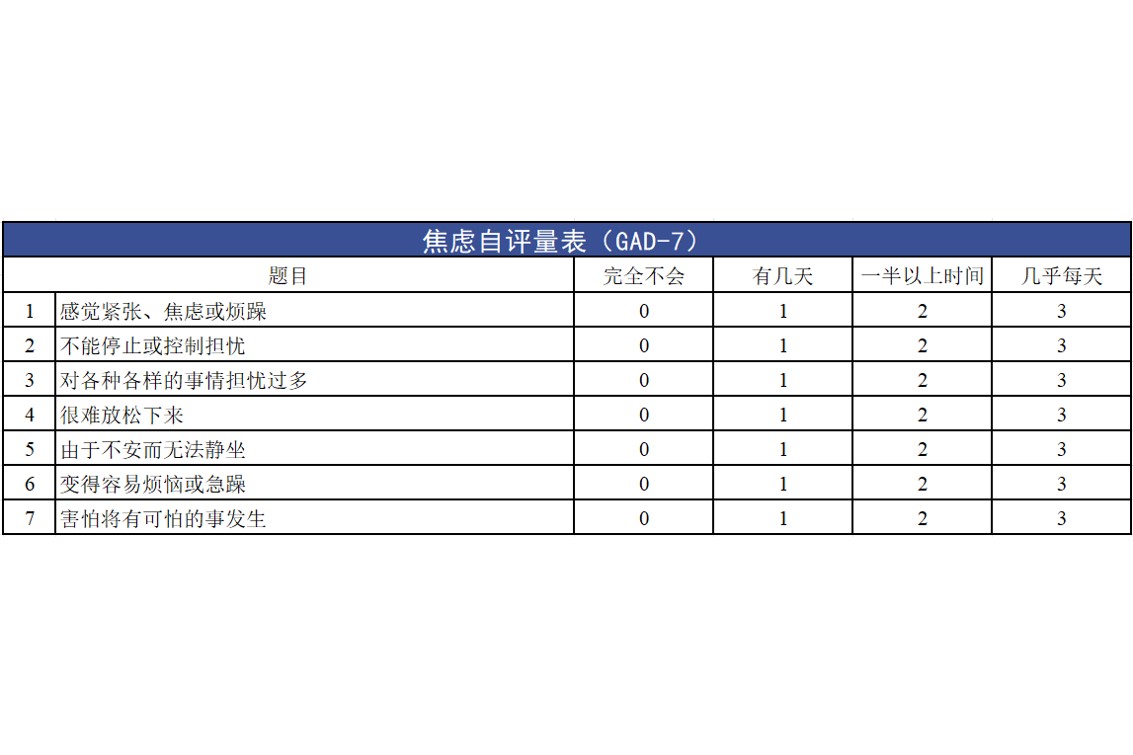 要定期给心理“体检”,早早发现不对劲,筑牢心理健康第一道防线。有一些简单的自评工具,可以帮助大家对最近一段时间的心理健康状态进行异常的识别。但需要特别注意的是,自测的量表结果仅供参考,并不代表疾病确诊意见,应进一步到医院进行检查和量表结果解读。