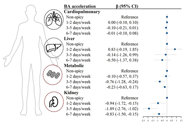 辛辣食物摄入与多个器官系统生物衰老之间的关联