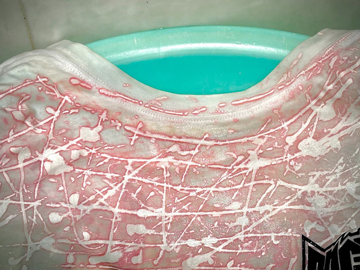 马洪被漂白剂“染红”的白T恤(图片来源:克莱尔·S.马洪/达勒姆大学)