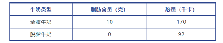 其实不用纠结全脂牛奶和脱脂牛奶相差的那 80 千卡的热量,实在介意倒不如做菜少放半勺油或者少吃点高热量的零食。