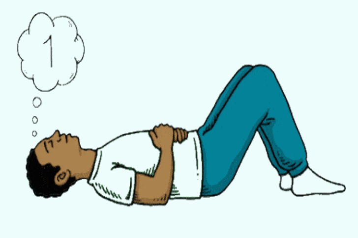 双手手掌放在肚脐位置,鼻吸鼻呼,吸气时将气体更多引入胸腔下部和腹腔,能感觉扩张的腹腔将双手向上顶出;然后呼气放松,此时腹部回落。每组练习5—8次,每次练习3组以上。
