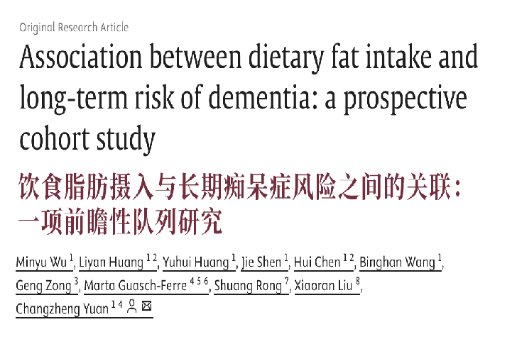 ①Association between dietary fat intake and long-term risk of dementia: a prospective cohort study.The American Journal of Clinical Nutrition.2025.
