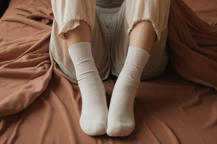 常见于久坐少动的人群,因气血难以抵达四肢末端,手脚易凉。穿袜子睡觉可为脚部加热,促进局部血液循环,改善整体体感温度。