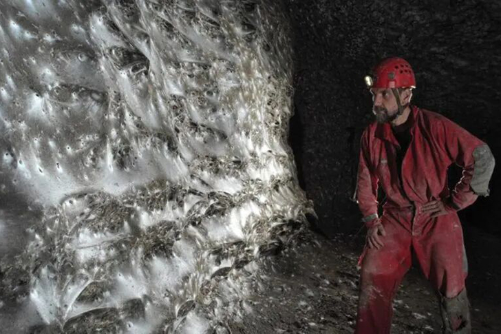 在这样充满毒气的环境里,人们很难想象会有多少复杂生命存在。然而2022年,一群洞穴生物学家进入“硫洞”调查时,在距离洞口约50米的地方,目睹了难以置信的一幕:一张面积达到100平方米的巨大蛛网。