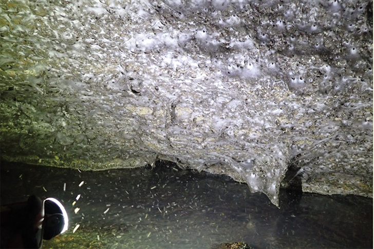 硫洞内的巨型蜘蛛网(图片来源:Subterranean Biology/Marek Audy)