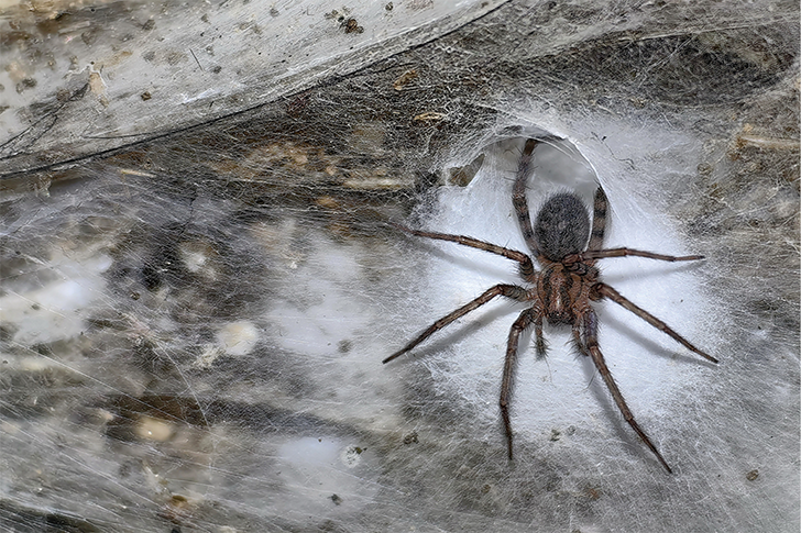 大多数蜘蛛都有强烈的领地意识,只会单独织网。而这张巨网却是罕见的“集体工程”——是由众多蜘蛛共同建造的庞大结构。参与织网的包括约6.9万只家隅蛛(Tegenaria domestica)和4.2万只游荡始微蛛(Prinerigone vagans)。这两种蜘蛛在我们生活中并不陌生,房屋角落或地下室常能遇见。