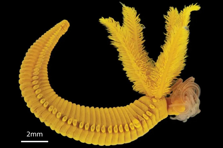 与深海化能合成生态系统中的其他“居民”不同,贺氏拟阿尔文虫通体呈现罕见的亮黄色。在终年不见阳光的深海,大多数生物要么近乎透明或呈灰白色,要么因富含血红蛋白而呈现橙红色。因此,这种鲜艳的黄色在深海生物中极为少见,立刻引起了科学家的注意。