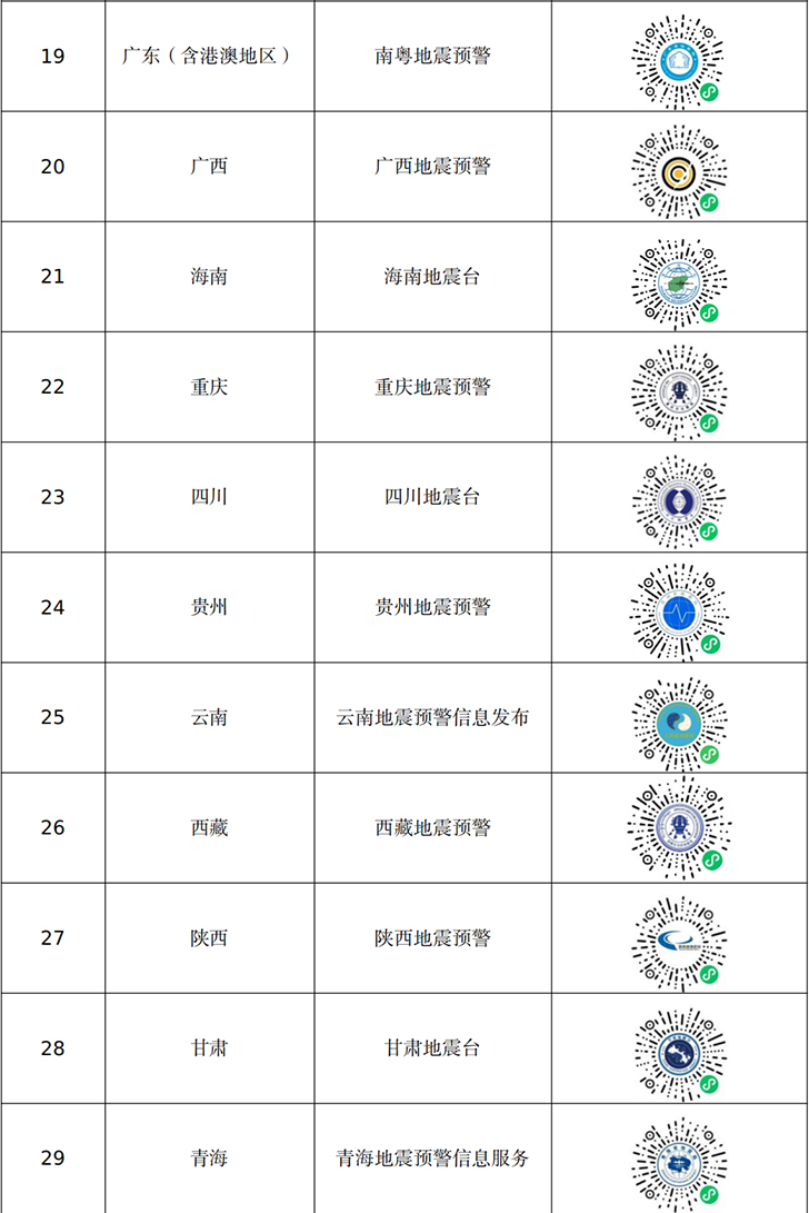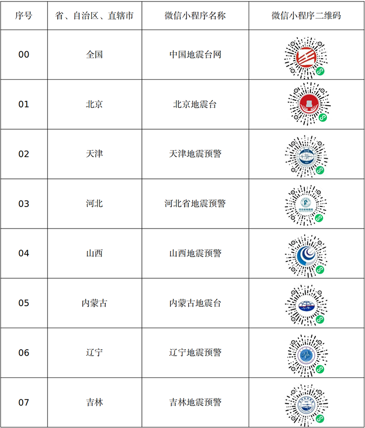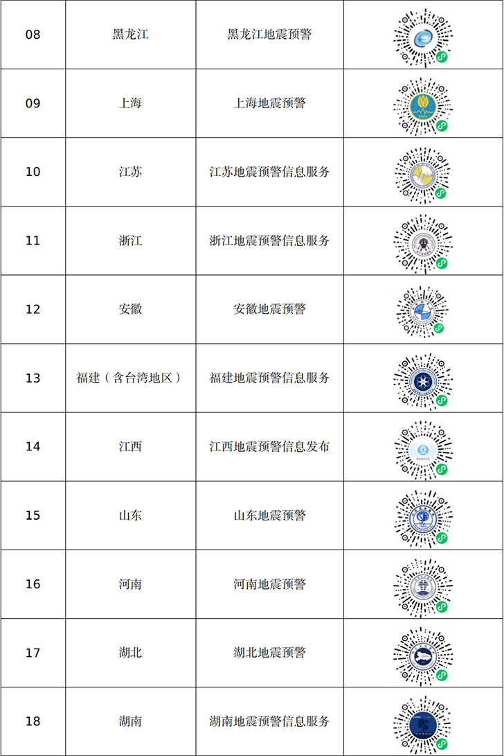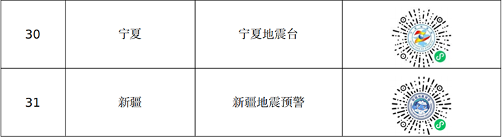 地震预警信息的接收渠道主要包括手机、电视、专用终端、广播等,其中,专用终端、广播预警无需公众进行设置,电视预警需按预警功能启动界面提示进行激活,手机预警需根据提示设置接收预警信息功能。表 A.1 给出了目前广泛使用的手机微信预警小程序列表及设置方法。
