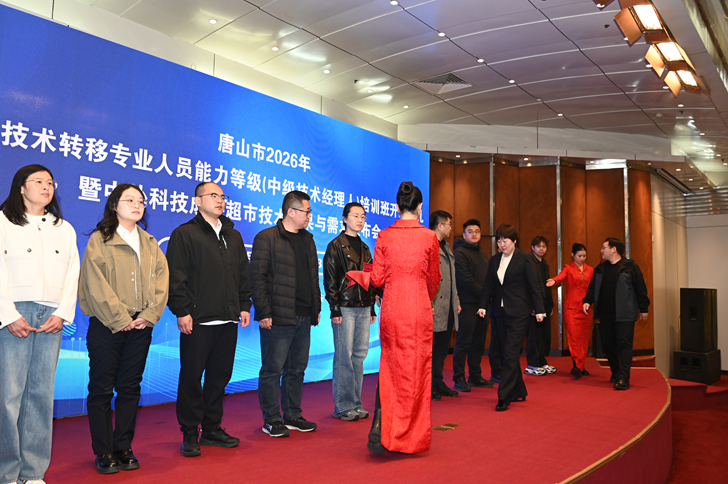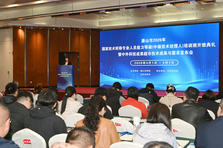 4月1日上午,唐山市2026年国家技术转移专业人员能力等级(中级技术经理人)培训班开班典礼暨中外科技成果超市技术成果与需求发布会在迁安市迁安锦江宾馆举行。此次活动旨在培育高素质、复合型技术转移人才队伍,打通科技成果转化“最后一公里”,推动创新链、产业链、资金链、人才链深度融合,为唐山高质量发展注入强劲科创动能。来自唐山各县(市、区)及重点企业、高校院所的120余名相关从业人员参加了为期三天的培训。